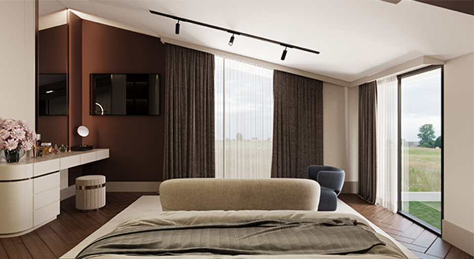 Yüksek kapı ve pencere boyları ile güneş alan villalar.